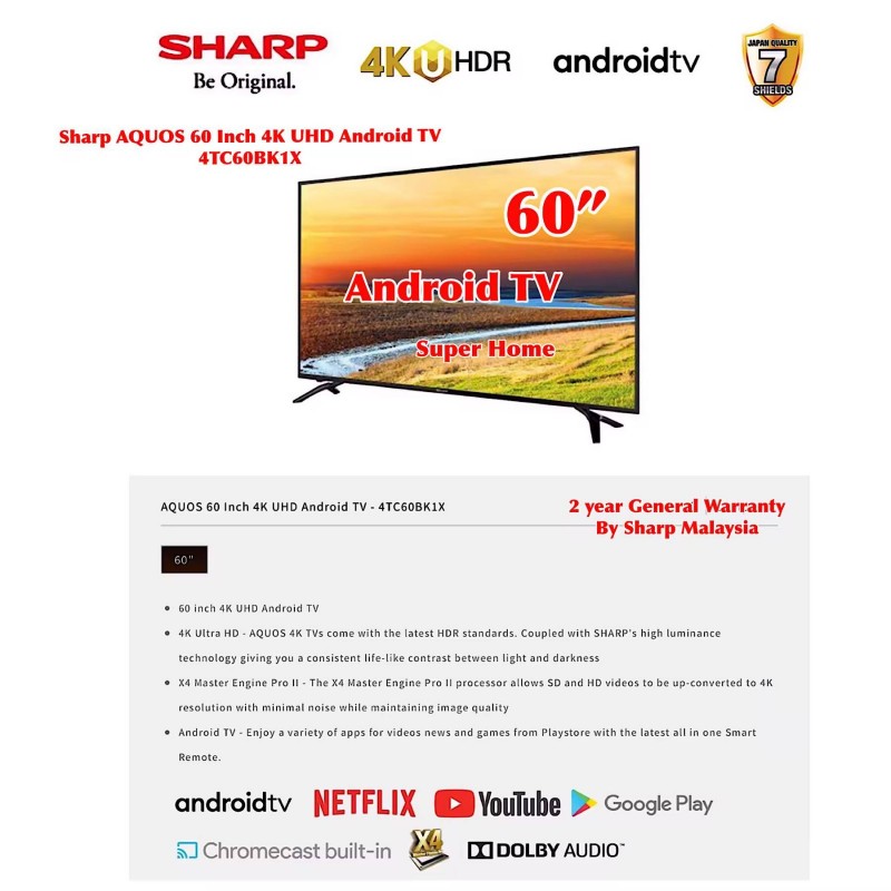 1 set x SHARP 60 inches 4K UHD Android TV 4TC60BK1X