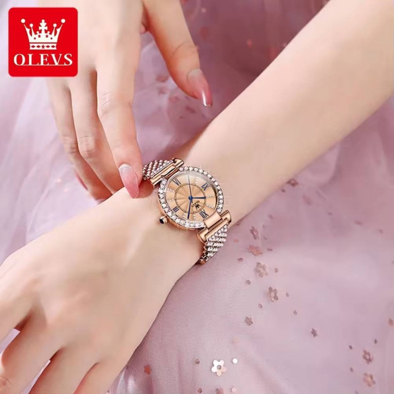 Specifications of OLEVS watch for women sale now free shipping original waterproof 2023 korean style luxury rose gold stainless steel diamond quartz watch